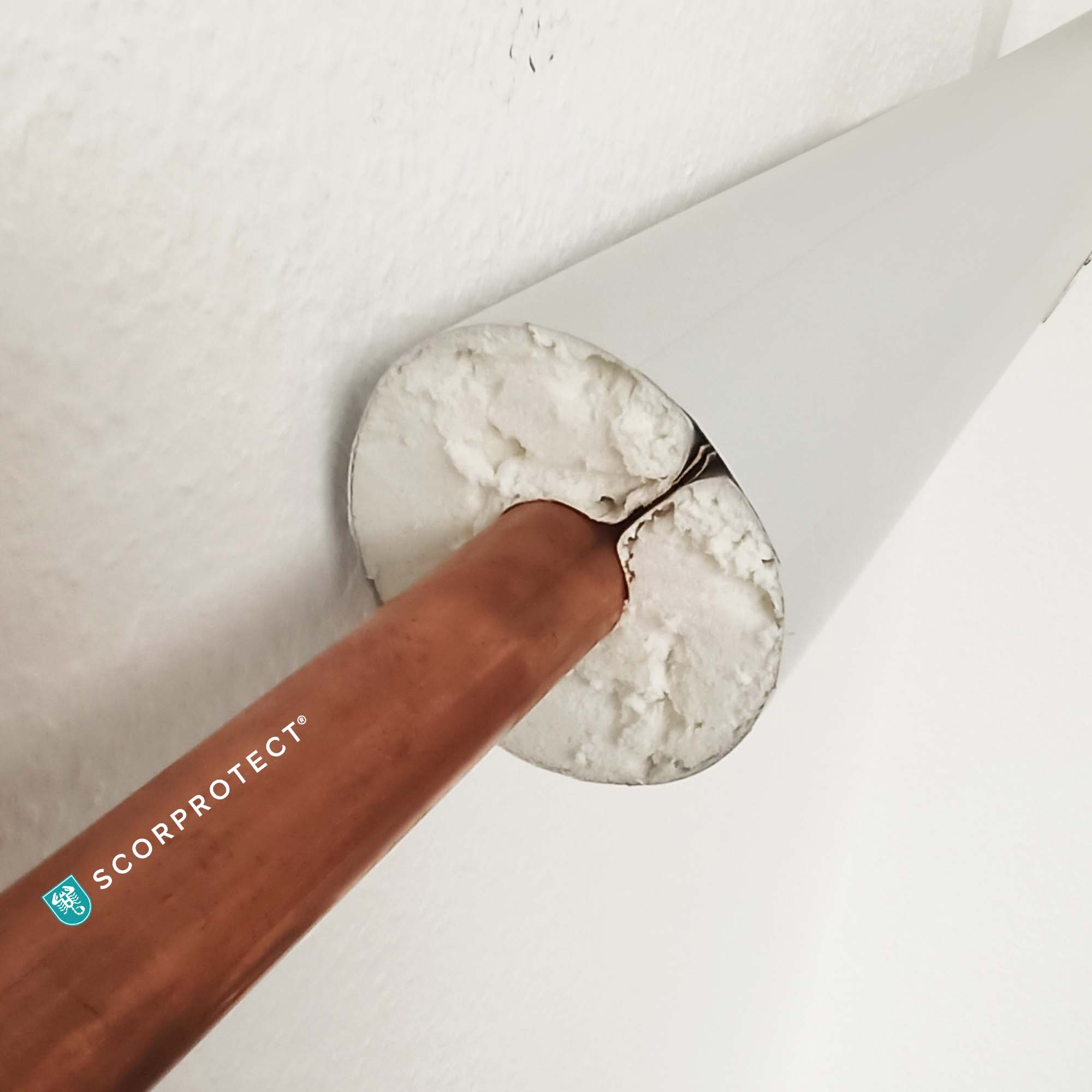 Für die optimale Passform des Bandes ist ein Bewegungsraum von 2 mm zu dem isolierten Rohr erforderlich.