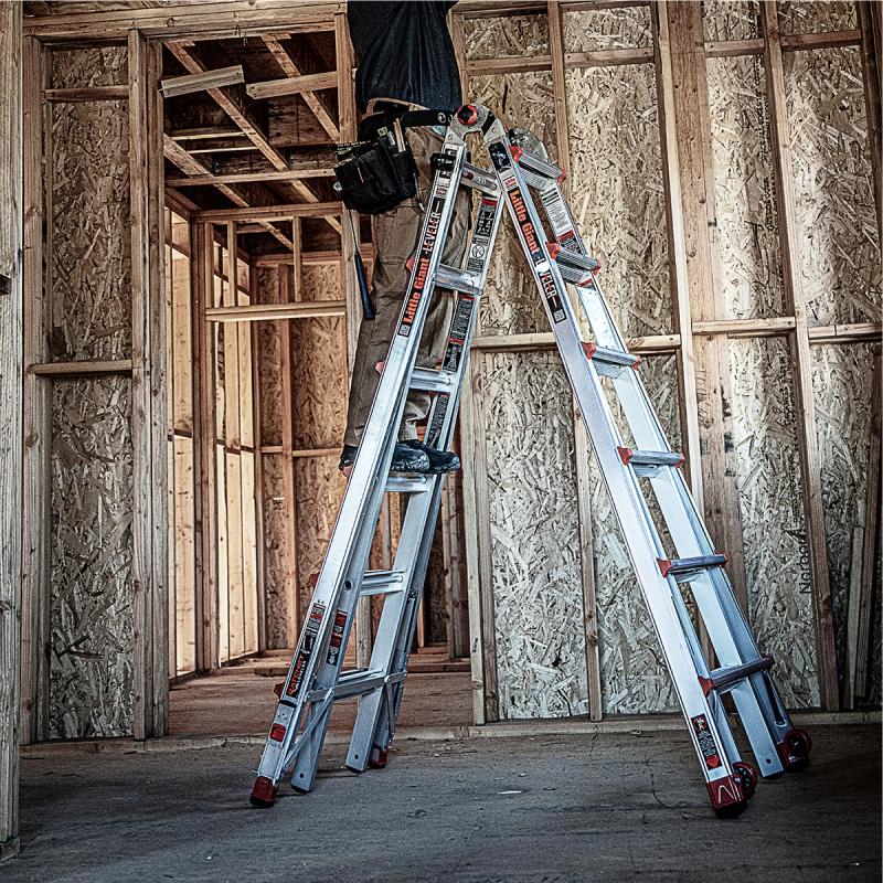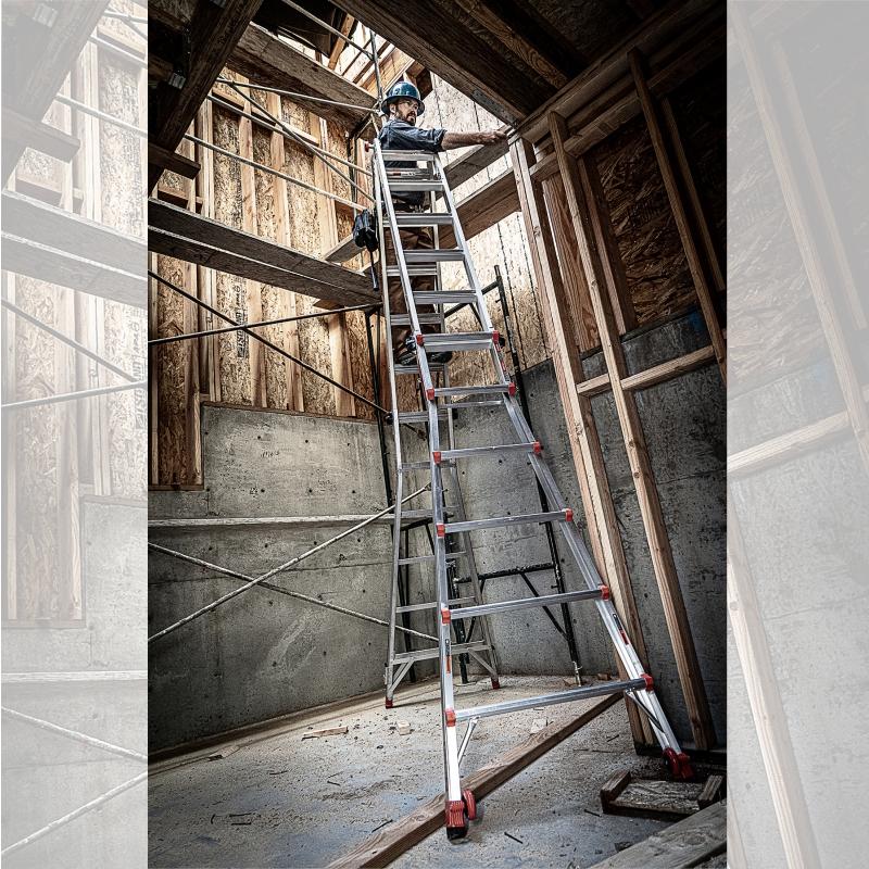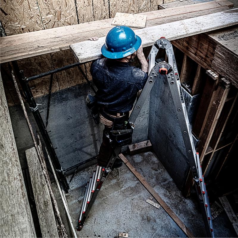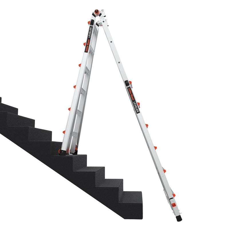Die Verwendung einer Leiter im Freien war schon immer mit besonderen Herausforderungen verbunden aber die Little Giant® Teleskopleiter Leveler™ ändert vieles. Egal, ob Sie auf unebenem Boden arbeiten oder zum Beispiel Ihre Leiter auf einer Treppe aufstellen wollen, die Leveler kommt damit zurecht. Mit ihren integrierten Holmverlängerungen lassen sich die Leiterfüße auch unterschiedlich voneinander auf die jeweils benötigte Länge ausfahren.