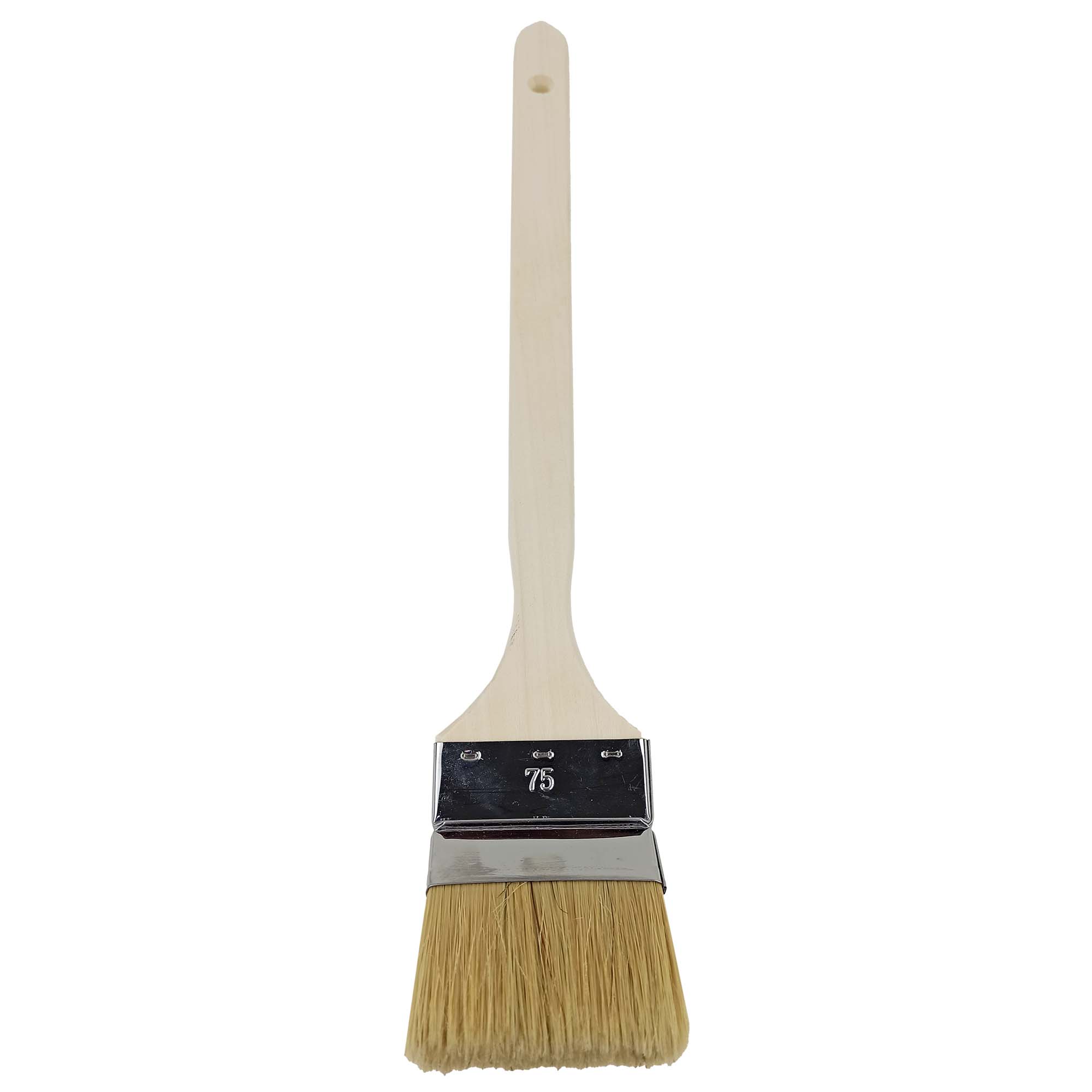 Borstenmischung aus zweimal gekochter Naturborste stabilisiert durch hochwertige Kunstborste. Dadurch gewährleistet sie einen guten Farbaustausch und trägt zur Effizienz bei. Die Borste bleibt auch bei zähen Materialien formstabil, dadurch besonders für Spezial- und Industrieanwendungen geeignet. Breite: 75 mm, Borstenlänge: 51 mm, Dicke: 9 mm.