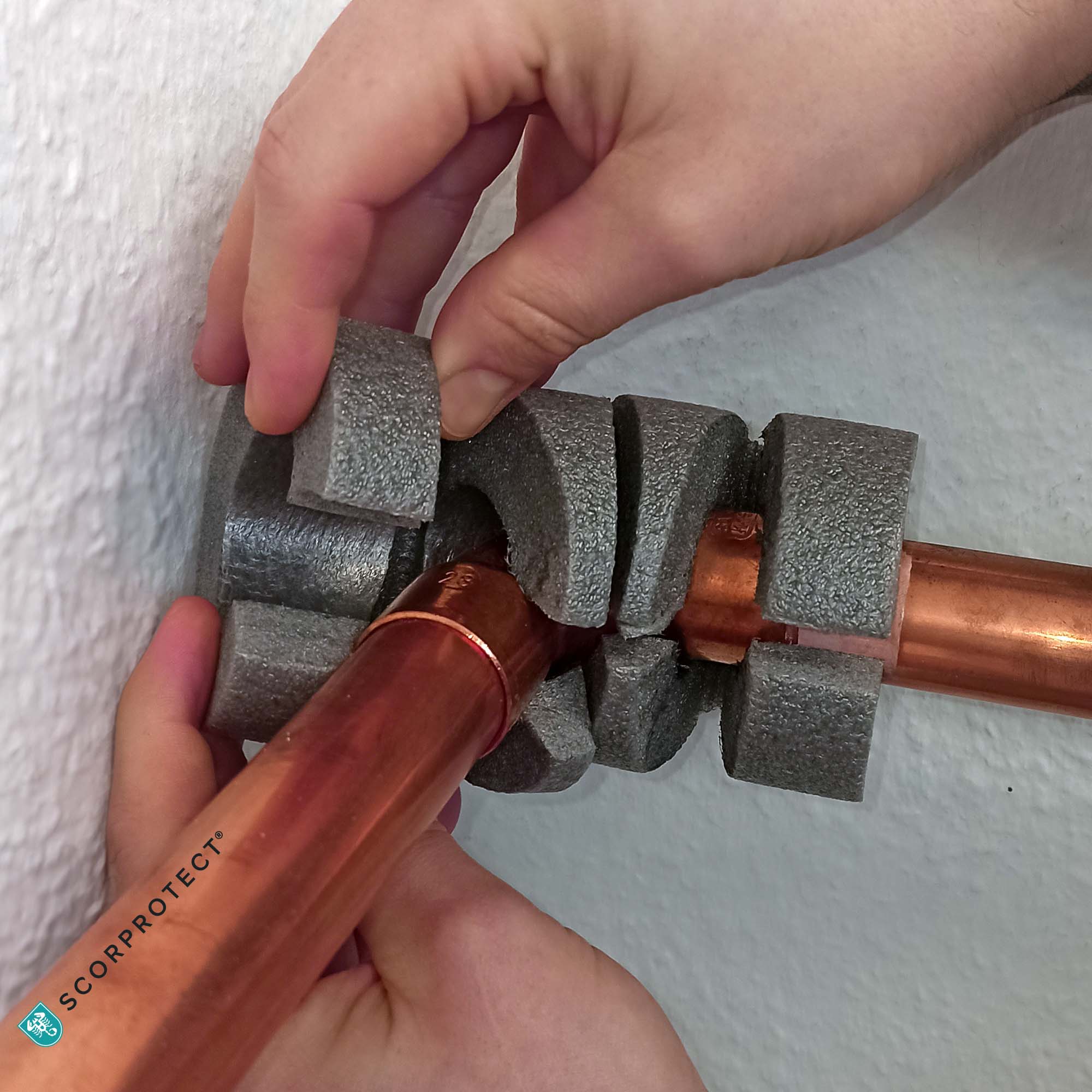 Beispiel für die richtige Wahl des PE-Bogens: Kupferrohr 22 mm. Hier verwenden Sie bitte den PE-Bogen mit einer Isolierstärke 13 mm 22/13.