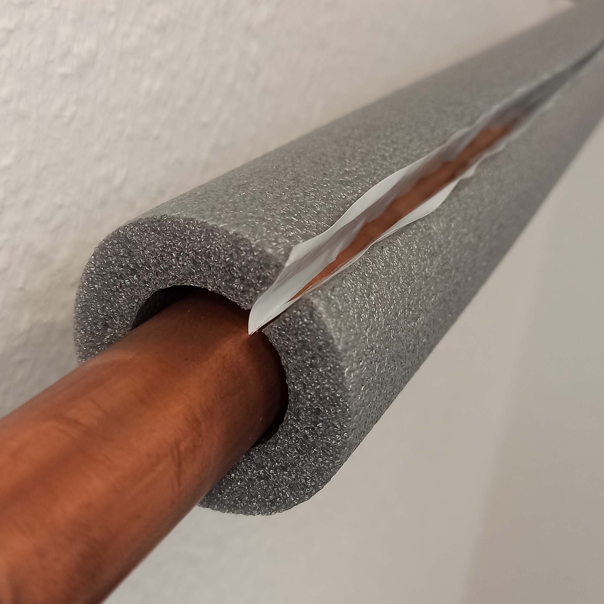 Produktinformationen "PE Rohrisolierung selbstklebend 1 m ganzer Karton Farbe grau 35 mm x 13 mm"