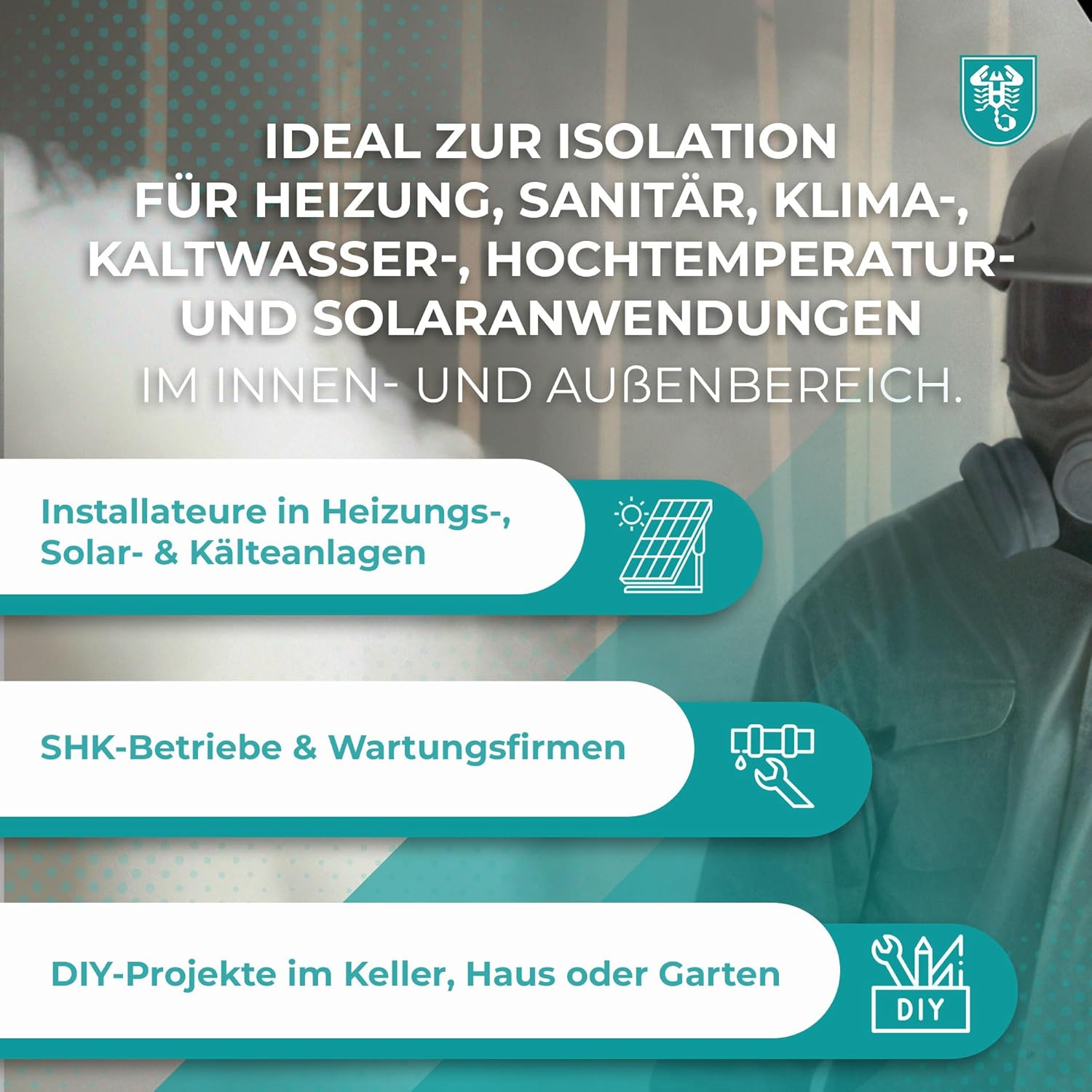Solar EPDM Kautschuk Rohrisolierung 2 m Stange ist ein flexibler, geschlossenzelliger Dämmstoff mit einer exzellenten UV- und gleichzeitigen Hochtemperaturbeständigkeit bis zu +150 °C. Der elastomere Dämmstoff verhindert verlässlich Tauwasser und reduziert Energieverluste nachhaltig. Die geschlossenzellige Struktur bietet eine dauerhafte Dampfsperrwirkung, stoppt so effektiv den Dampfdurchtritt und gewährleistet eine zuverlässige Dämmleistung während der gesamten Nutzungsdauer des Systems. Behält seine flexiblen Eigenschaften im Temperaturbereich zwischen +150 °C und –50 °C Integrierte Wasserdampfsperrwirkung reduziert das Korrosionsrisiko unter der Dämmung Gute thermische Effizienz, ≤0,038 W/(m·K) bei 0 °C Tropft nicht ab im praktischen Brandfall