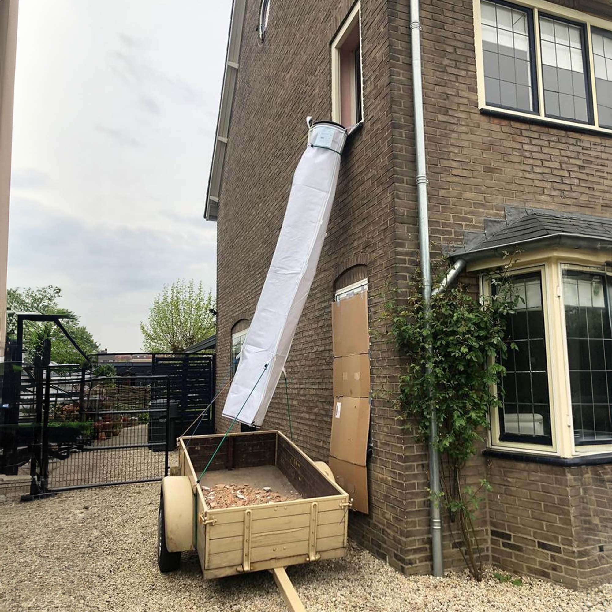 Die flexible Schuttrutsche Bauschuttrutsche ist alles, was Sie benötigen, wenn Sie auf der Suche nach einer günstigen, schnellen und einfachen Möglichkeit sind, Ihren Abbruchschutt über mehrere Etagen von der Baustelle aus dem Objekt/Haus zum Container zu befördern. Sie kann durch eine Person montiert werden und die Montage dauert nur wenige Minuten. Die flexible Schuttrutsche lässt sich leicht zusammenfalten und ist somit eine kompakte, leichte zu transportierende Hilfe. Zudem ist unsere flexible Schuttrutsche ideal für ganz verschiedene Einsatzgebiete, wie zum Beispiel: das Entfernen von Abbruchmaterial, Entfernen von Kies, Entfernen von Fliesen, Holzarbeiten, Reinigen von Dachrinnen/Dächern, der Entrümpelung von Häusern usw. Mit dem mitgelieferten Zubehör, können Sie sofort loslegen und haben alles was Sie für den Aufbau und für die Benutzung benötigen. Der stabile Zero Dust PP Gewebesack 70x110cm, ist der perfekte reißfeste Entsorgungssack für Gebäudesanierungen mit Verschlussband.
