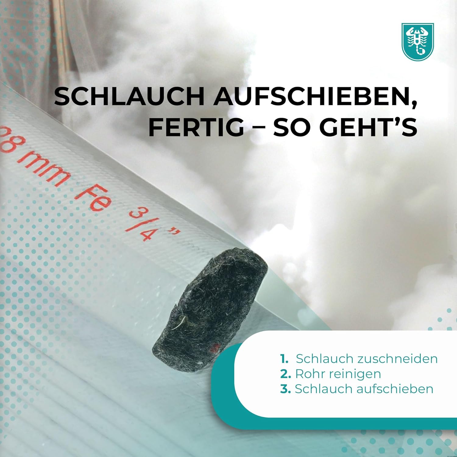 - Durch die Gleiteigenschaften des Vlieses läßt sich der Schlauch leicht über Muffen und Bögen ziehen