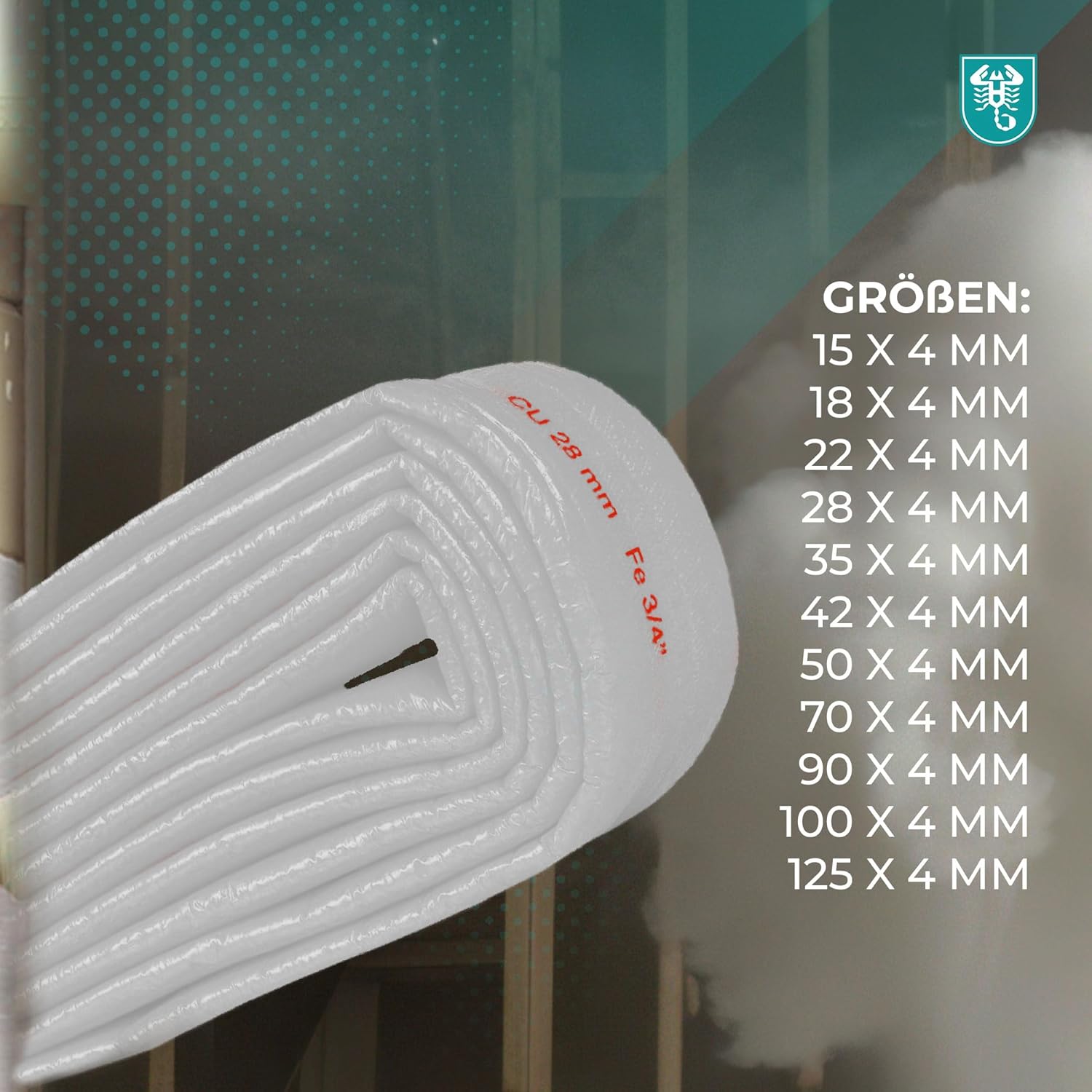 - Außenhaut schützt den Dämmstoff und das Rohr vor Feuchtigkeit sowie vor Beschädigung nach der Installation